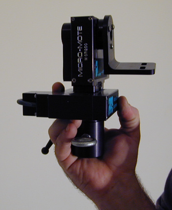 The ACE MicroMote system is already fast becoming the choice of the leading directors at the network level. The head is very robust for it's size and is designed to meet the rigorous demands of on air work. Very high panning and tilting speeds can be achieved approaching 180/2 sec. extremely slow, controlled moves, are also easy to perform. The head is small enough to hold in your hand and can handle cameras weighing up to ten pounds. A convenient 5/8'' receiver allows easy, fast mounting in the upright or under-slung position on any standard 5/8'' spud. A wide assortment of mounting hardware is supplied with each rental, and special mounts can be fabricated to suit the needs of the project.